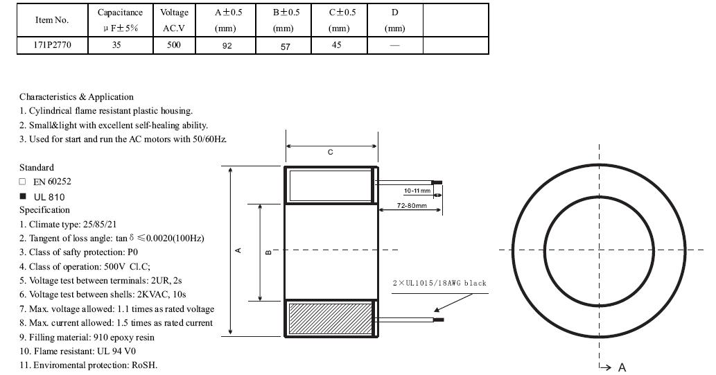 備注說明:尺寸、容量和額定電壓可以根據(jù)客戶的要求定制,本產(chǎn)品通過UL認(rèn)證