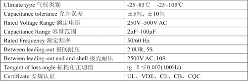 內(nèi)置熱保護器和放電電阻,性能穩(wěn)定使用安全,主要用于燈具或性負載作功率補償。